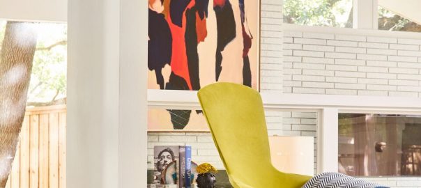 This eclectic residence is a highly personalized take on a historic home in Seattle’s Upper Queen Anne neighborhood. With teals and reds set against highly textured neutrals, this home stays true to its traditional roots while showcasing eclectic accessories and patterns.