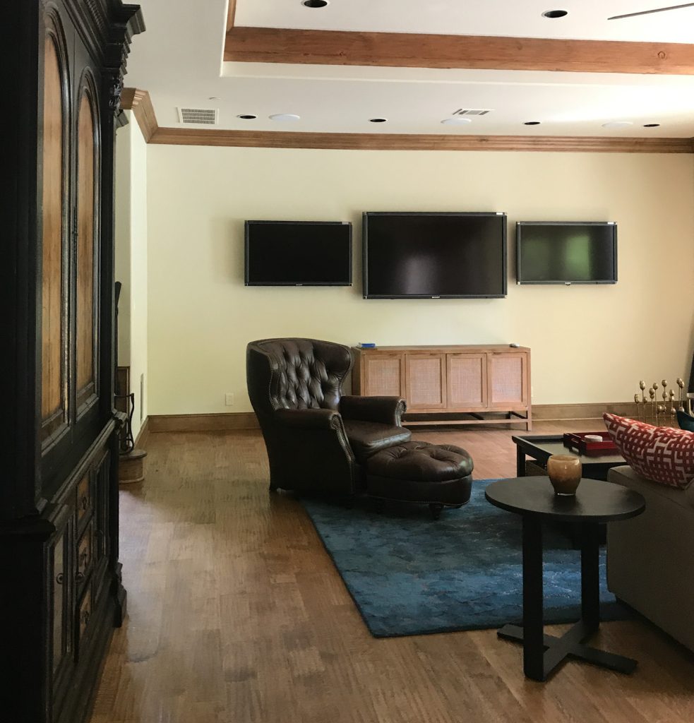 Outdated furniture and a drab palette were what we started with. We transformed the interior with our signature Pulp fearless design aesthetic, including rich navy walls, warm wood tones, and brass accents. Plush performance fabrics ensure durability for family life and gatherings alike. Now the space is made for luxe entertainment with a bold mix of hospitality, functionality, and high-end style.