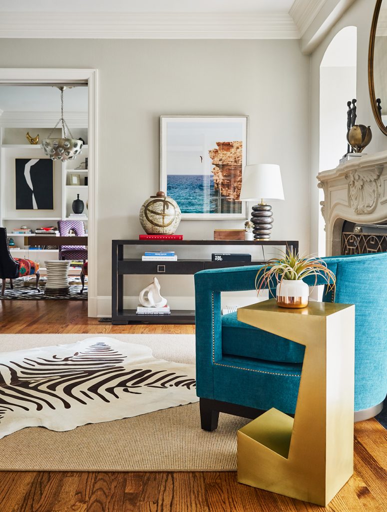 The mistake we see most often in homes are rugs that are too small. You should always invest in the largest rug you can for the room. The furniture should fit comfortably and fully on the rug, otherwise it will all look unanchored. In the living room above, we crafted a custom rug so it would not only fit the room’s palette, but it would also fit the space, too.